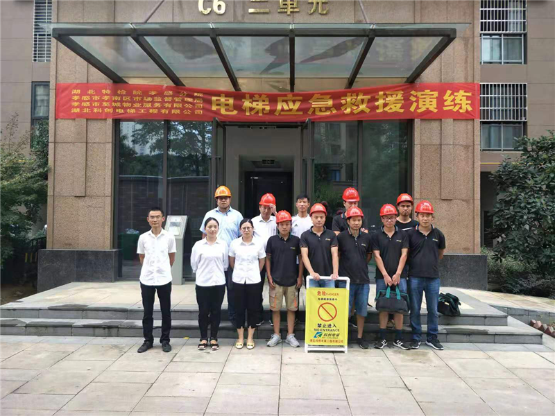 2019年8月28日湖北特检院孝感分院带领孝感市至诚物业服务有限公司、湖北科创电梯工程有限公司相关人员参加了星河天街C6栋电梯应急救援演练,此次演习物业公司邀请了业主参加观摩,增加了业主对电梯困人后的救援处理的认知。主要目的是为了增强电梯安全意识,普及电梯安全常识,规范电梯应急救援程序。总之,在演习中充分锻炼各部门成员处理应急情况的综合能力,针对星河天街住宅小区宣传了电梯应急救援知识,促进我们共同为业主服务更高、更快、更强的应急救援工作能力,为业主的安全便捷出行提供充分保障。