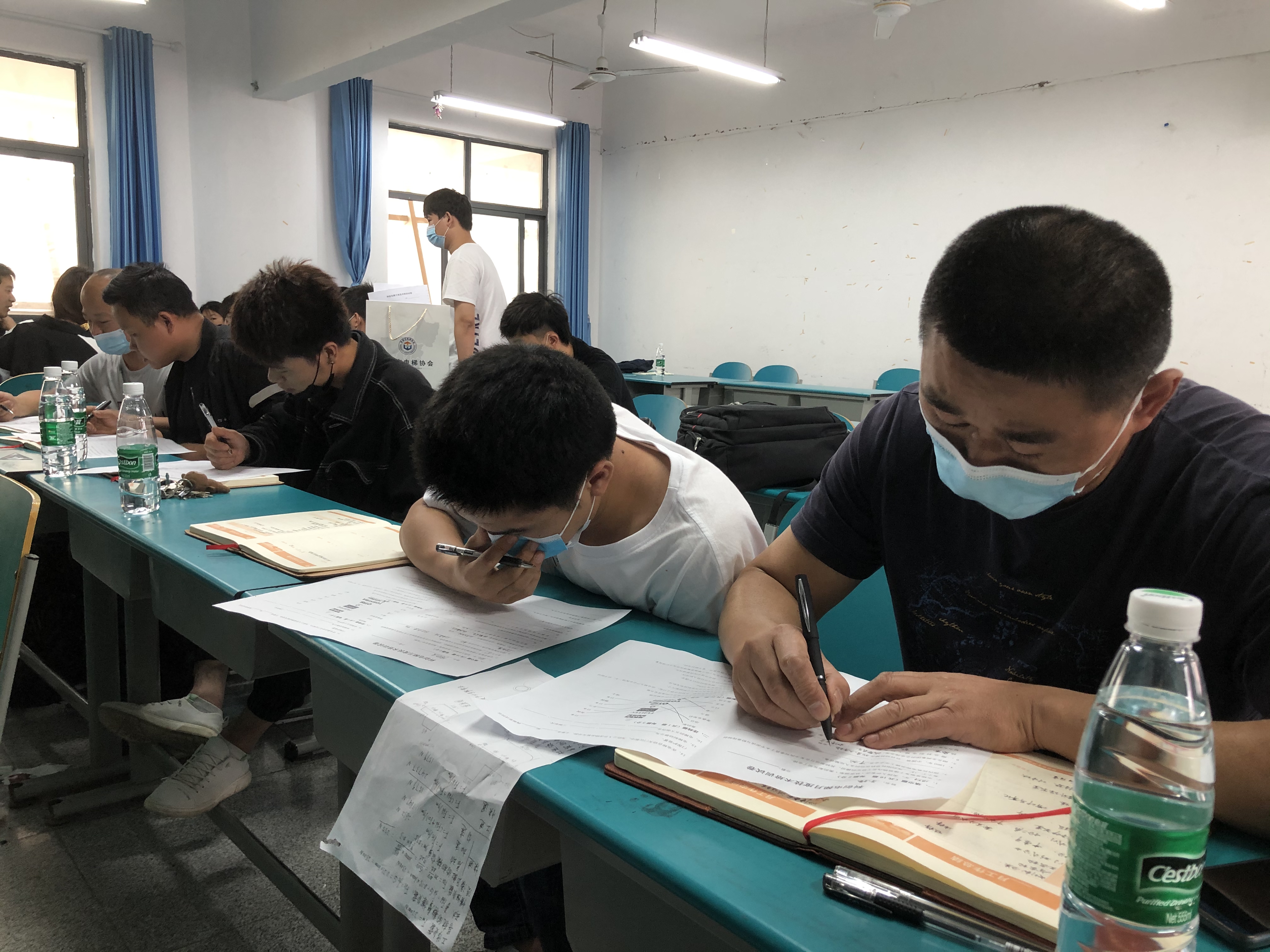 课后电梯维保人员进行了课程相关的考试,科创公司谭工与湖北工程学院的老师和学员一起,就电梯机械工程设计与实际运行情况等方面进行了分组探讨,对学员们专业设计中的疑问一一作了解答,在场的学员和维保员都收获良多。