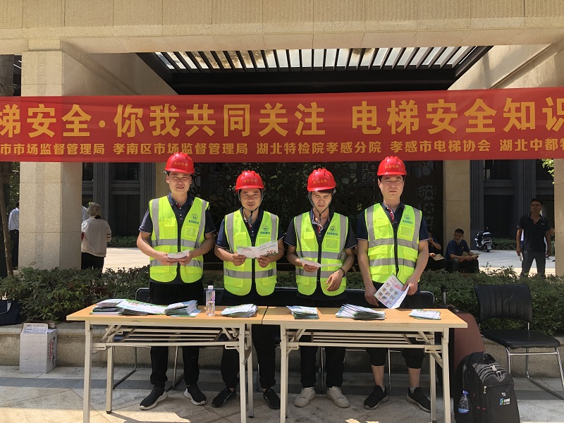 6月16日,为认真贯彻落实全国“安全生产月”和“6·16 全国安全宣传咨询日”的要求,为进一步提升广大市民电梯安全意识,增强社区居民正确使用电梯、文明乘梯的相关电梯知识,提高业主防范电梯事故的应急能力。孝感市电梯协会联合孝感市市场监督管理局、湖北特检院孝感分院、湖北科创电梯工程有限公司和湖北中都物业服务有限公司,在中都巴黎城小区开展了“电梯安全知识宣传和应急救援演练”活动。