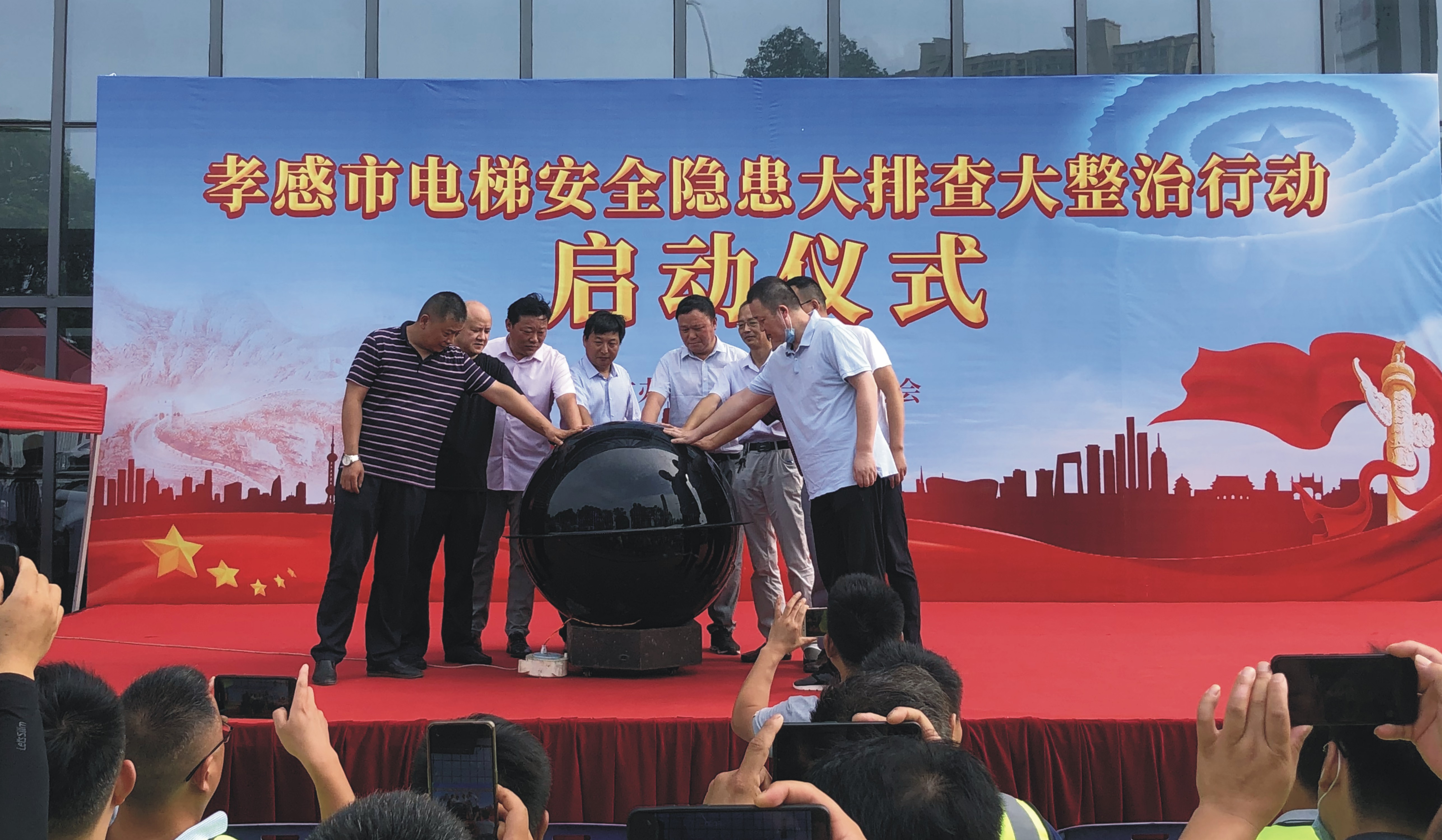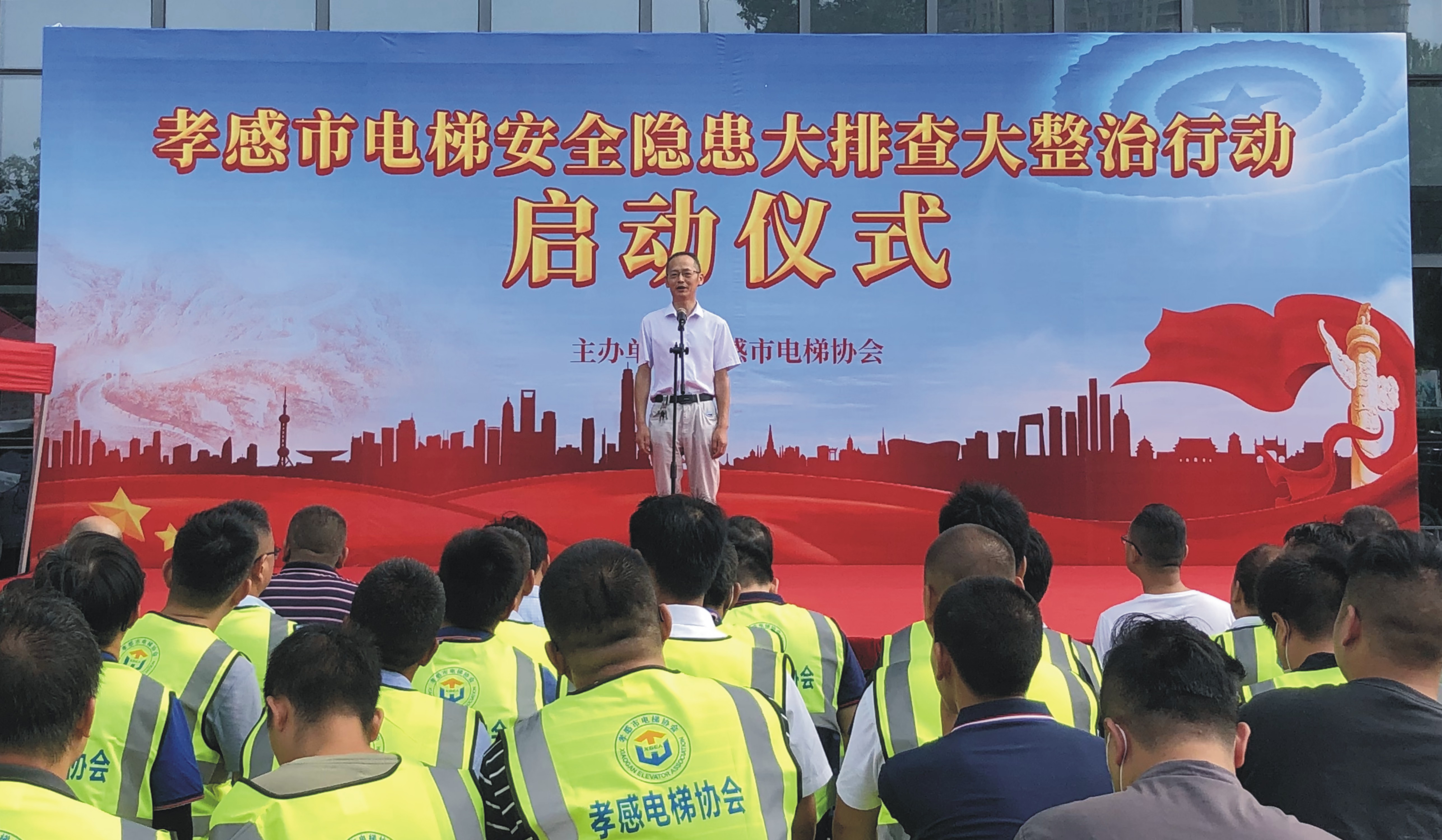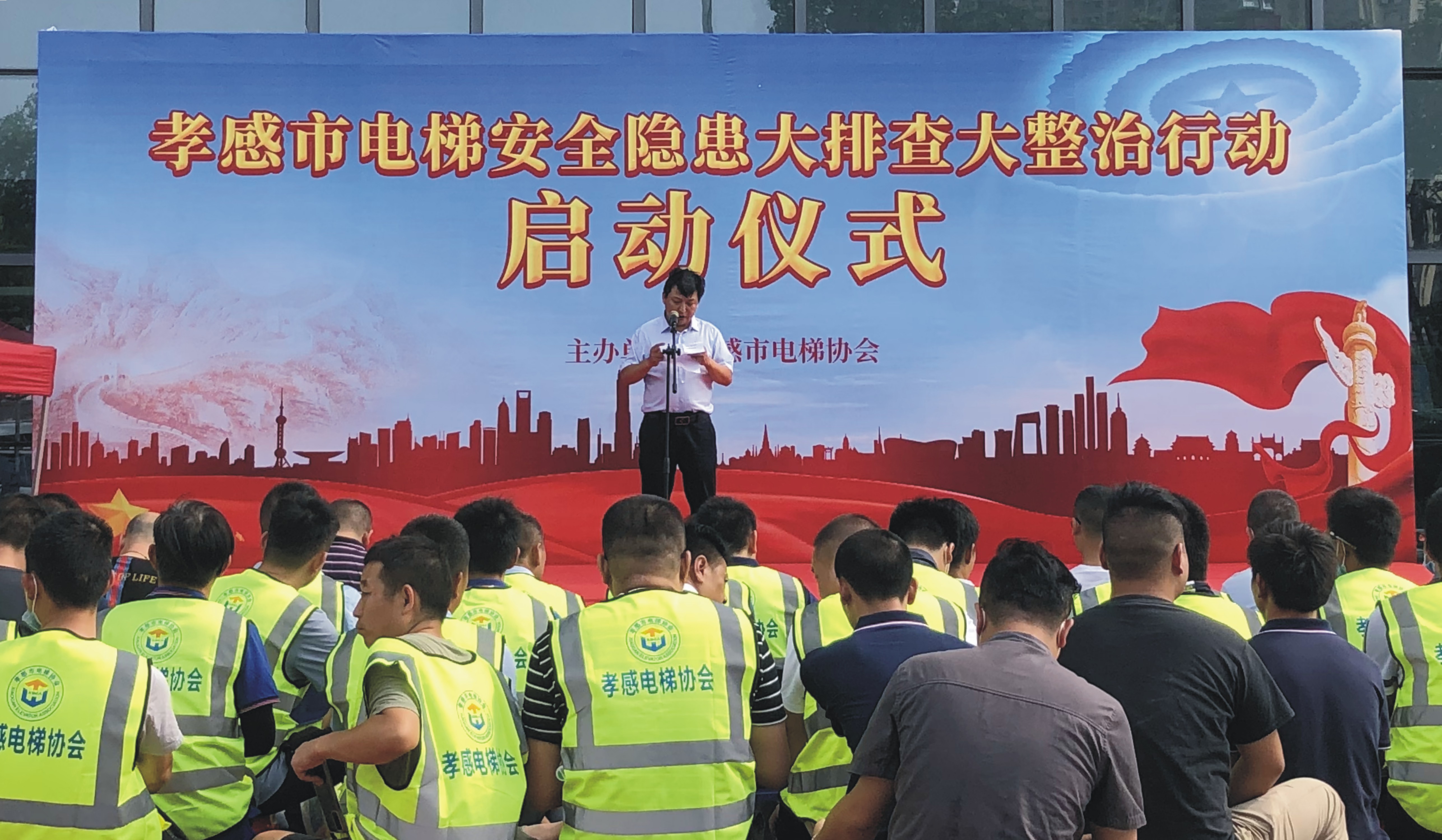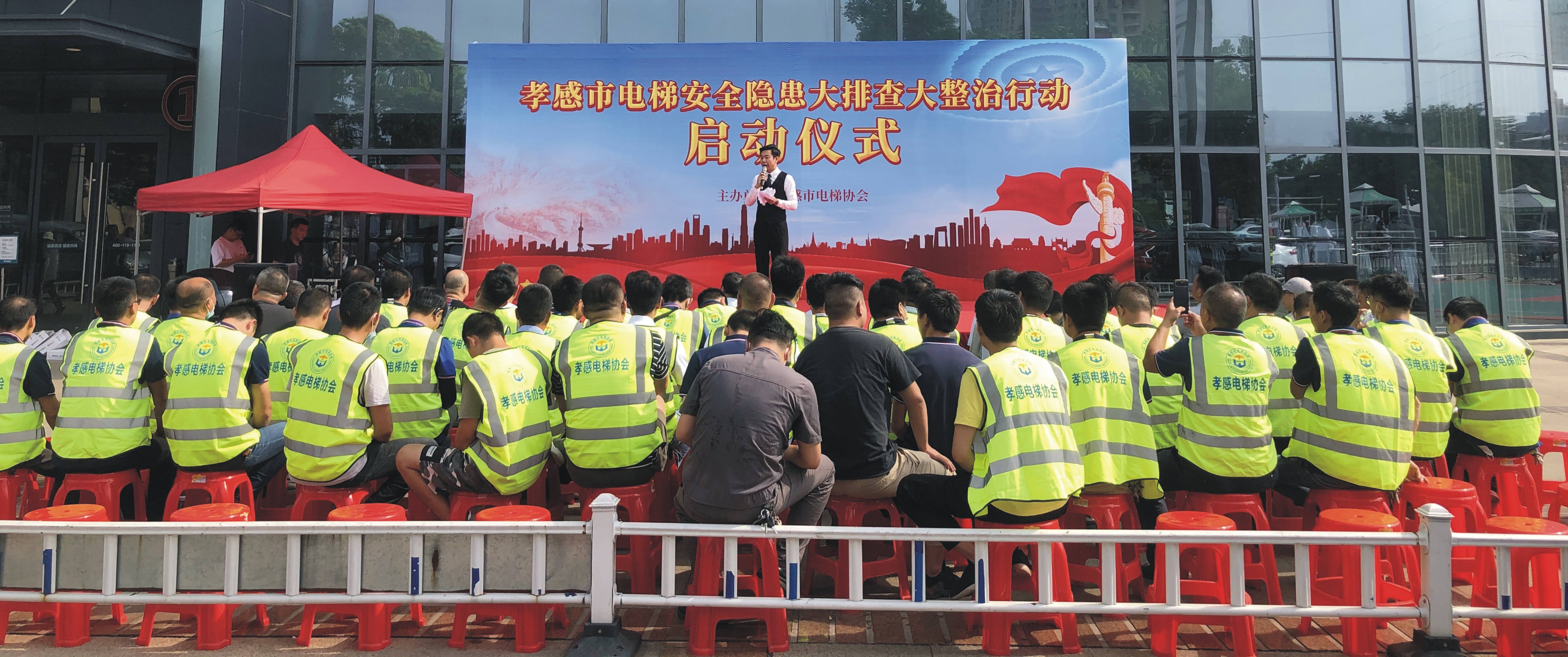 根据省安委办、省特种设备安委会、孝感市委市政府市下发安全工作文件指示精神,贯彻落实6月23日孝感市市场监督管理局召开的“电梯安全隐患大排查大整治”的专项会议精神,孝感市电梯协会积极响应,并协同孝感市市场监督管理局、孝感市市场监管综合执法支队及下辖市监所、湖北特检院孝感分院、孝感市电梯协会及成员单位于7月15日上午9时在银泰城广场举行了孝感市电梯安全隐患大排查大整治专项行动启动仪式。