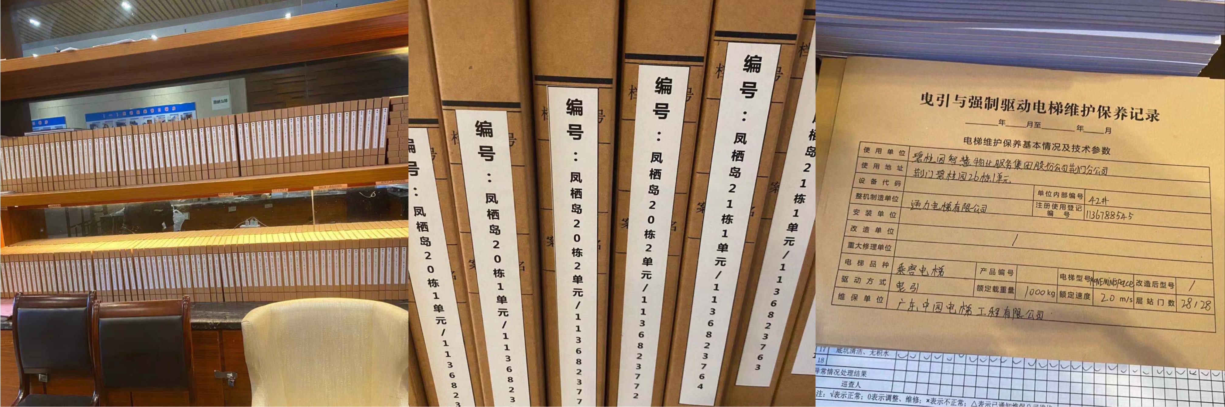 电梯档案管理一梯一档整齐排放,维保记录清晰可查。 在与随州中园电梯董总及维保人员的沟通交流中了解到: 1、中园电梯在人员配置方面采取以老带新、师带徒,将维保、维修、清洁各工种进行专业化分工,相互协作、相互促进,提高工作效率保障维保质量。 2、日常管理方面与业主方进行有效沟通,现场流程标准化,工程资料档案齐全,业务流程畅通高效。 3、质量管理方面由业主方和品管人员每月定期考核评分排名,明确奖惩。 从以上各个方面都能看出中园电梯团队专业规范、分工协作高效,创新服务质量高的特点,从环境卫生、维保效果、细节服务、管理思路等都是我公司目前状态下不可比拟的。