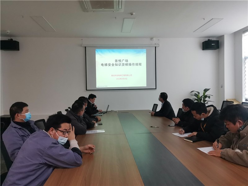 2022年2月25日,为了保证货梯安全运行,湖北科创电梯工程有限公司对吾悦商管工程部人员进行了电梯安全知识货梯操作规程培训,本次培训主要讲述了使用单位须对货梯进行定期检查,并由专人看管和维护,操作者应严格遵守安全守则。此次培训,使他们认识到电梯安全操作的重要性,增强了员工的安全意识,为电梯的平稳运行,提供了更有力的保障。