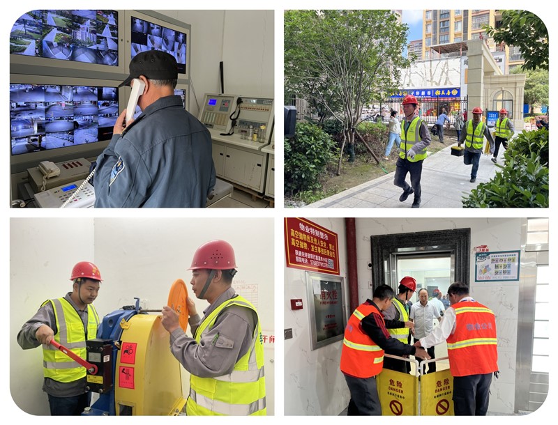 在云梦县城市客厅小区4栋电梯中模拟两名乘客被困;由城市客厅城宇物业和协会理事春安电梯组成的救援组很快赶到现场救援。外部人员及时询问被困乘客情况,安抚乘客情绪;与此同时专业救援人员迅速到达电梯机房,断电后手动盘车将轿厢停在一楼平层。外部人员通过专用钥匙打开层门成功解救出被困乘客。