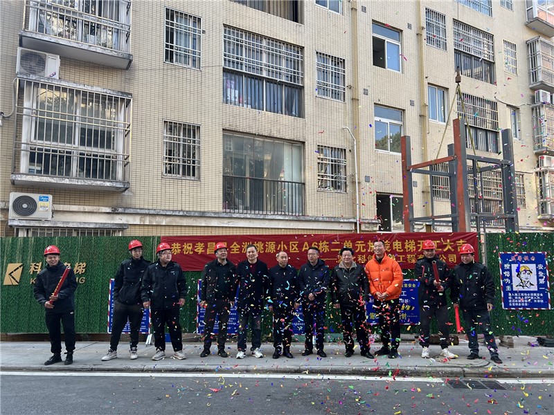 2023年12月12日上午,科创电梯公司同相关单位和业主代表在孝昌全洲桃源A6栋二单元门口举行加装电梯安装开工仪式。
