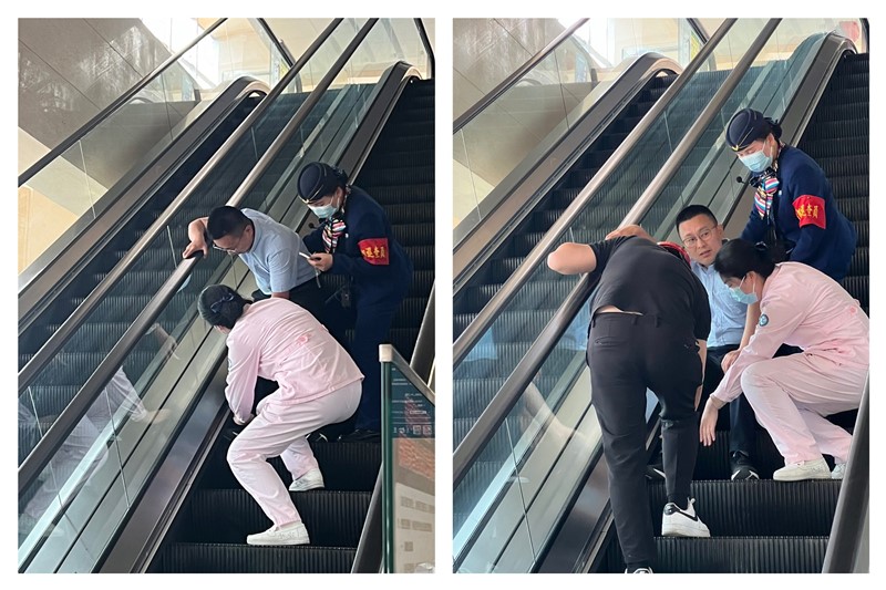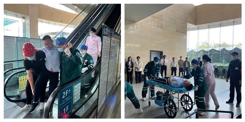 近期上海太原相继发生自动人行道、自动扶梯安全事故,为检验电梯应急预案,提高电梯应急协同处置能力,增强电梯安全意识。4月18日湖北科创电梯配合孝感市中心医院组织开展了医院自动扶梯夹人应急救援演练,孝感市市场监管局、孝感市电梯协会专家应邀观摩进行技术指导。