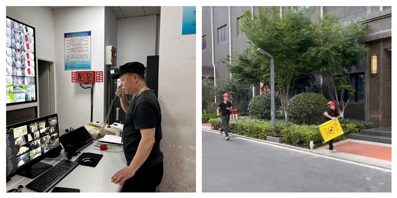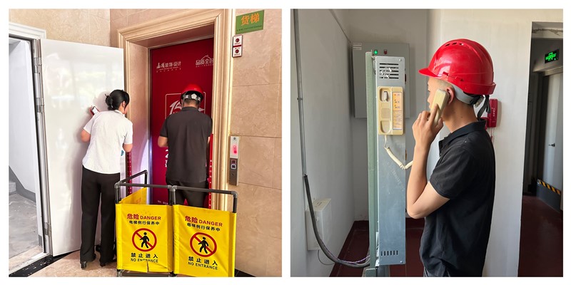 监控室接到求救信号后,立即启动应急预案,在与轿内人员通话安抚的同时,立即通知电梯安全管理员和电梯维保人员。我司维保人员接到救援电话后迅速赶赴现场,设置警戒围栏,物业客服安保人员也赶到现场安抚轿内人员,告诉被困乘客电梯专业人员正进行救援请安心等待。