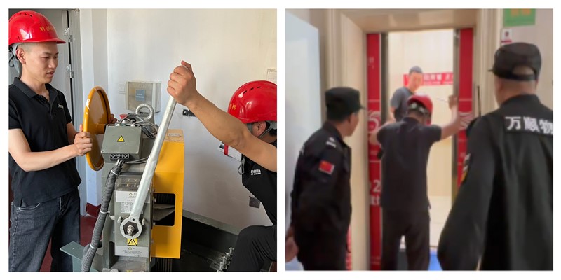 维保救援人员兵分两路,一路在厅门外安抚乘客,提醒乘客“耐心等待救援”。另一路立即赶赴楼顶电梯机房。两路救援人员和电梯内乘客沟通后,切断电梯电源,依照电梯紧急救援操作开展盘车救援,15:40在上下人员的配合下成功将被困乘客安全救出,整个过程用时5分钟。最后物业客服对救出的脱困乘客进行安抚和心理疏导。