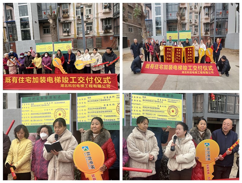 社区领导、业主代表参加仪式,代建单位科创电梯代表向业主代表交付电梯钥匙和电梯合格证。