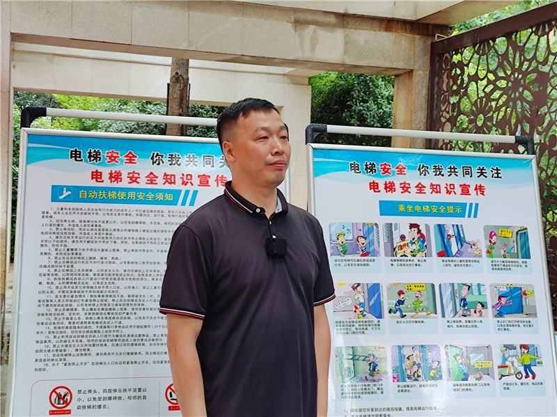 孝感市市场监督管理局特设科陈开山讲话 孝感市电梯协会会长徐仲平讲话 此次活动的开展,既是贯彻落实全国“安全生产月”工作要求的具体行动,也是我们向社会普及电梯安全知识、展示维保技术、增强公众安全意识的重要契机。通过专家讲解和现场展示,我们向业主揭开了电梯维保的“神秘面纱”,让大家直观了解了电梯安全运行的保障措施,进一步拉近了行业与公众的距离。协会将继续秉持专业、负责的态度,开展更多类似活动,推动行业透明化、规范化发展,为全市人民营造更加安全、可靠的乘梯环境。